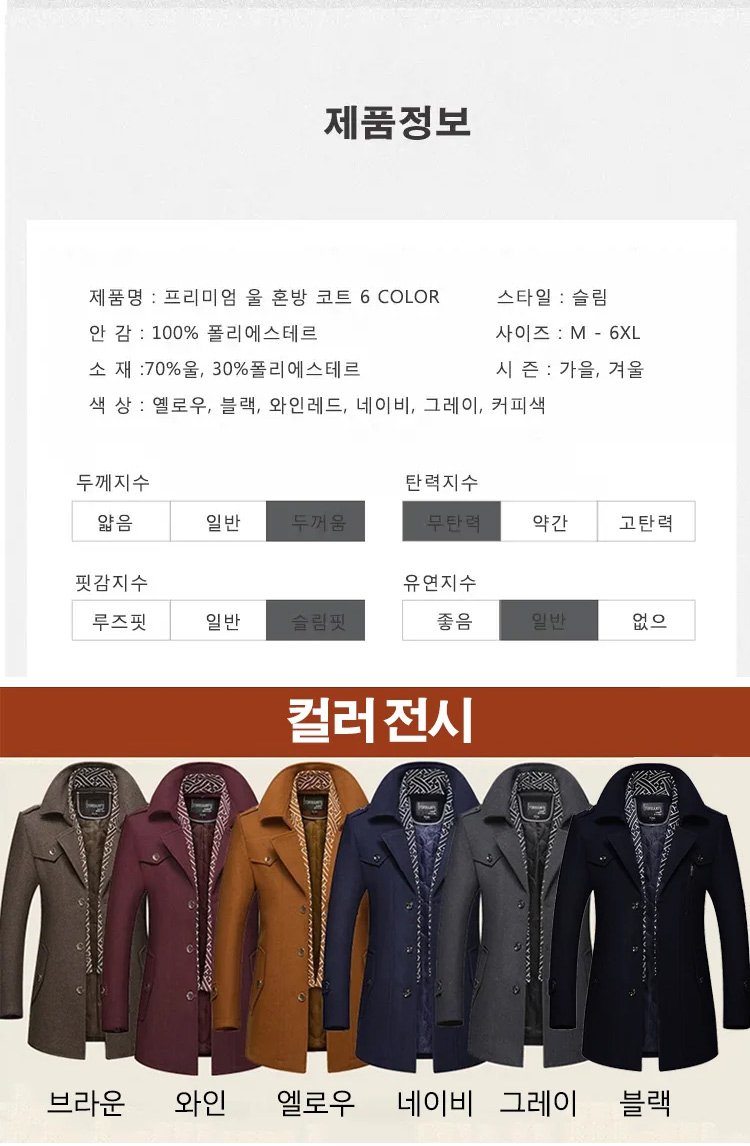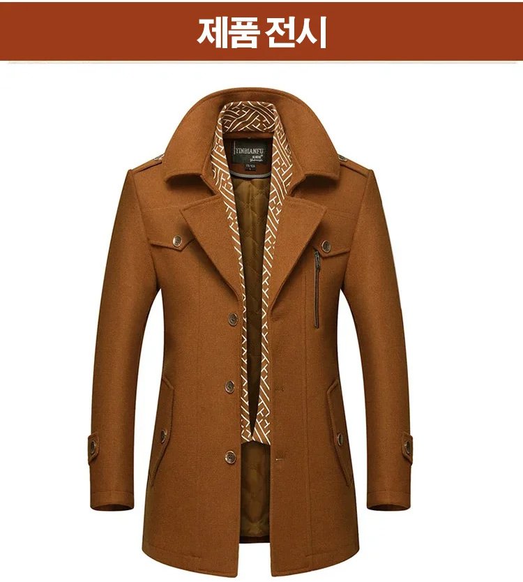 남성 머플러 미디 롱 모직 코트